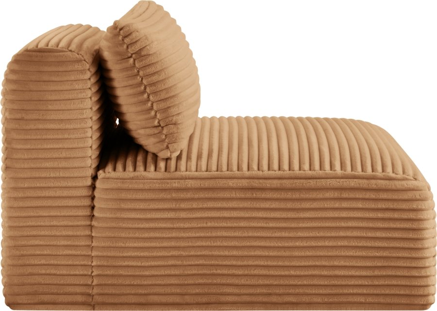 Indulge in luxurious and supreme comfort with the Shaggy saddle corduroy performance fabric upholstered armless accent chair, featuring soft furry-textured corduroy fabric with bold 1-inch-wide wales. Designed for both style and durability, this performance fabric is water-repellent and stain-resistant, ensuring long-lasting beauty. The comfortable foam seating offers plush support, while its modular design allows for infinite configurations to suit your space with a secure latch underneath to add more pieces.